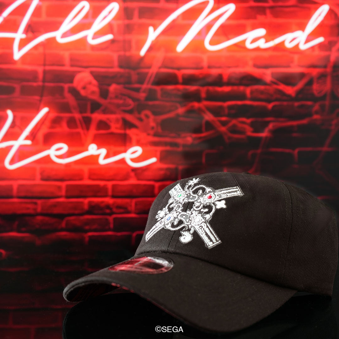 中央にはベヨネッタの愛銃スカボロウフェアの組み合わせを刺繍にして大きくあしらいました。ブリム(つば)裏にある魔法陣の隠しプリントも見どころ。魔界でのストリートファッションに欠かせないアイテムです 。